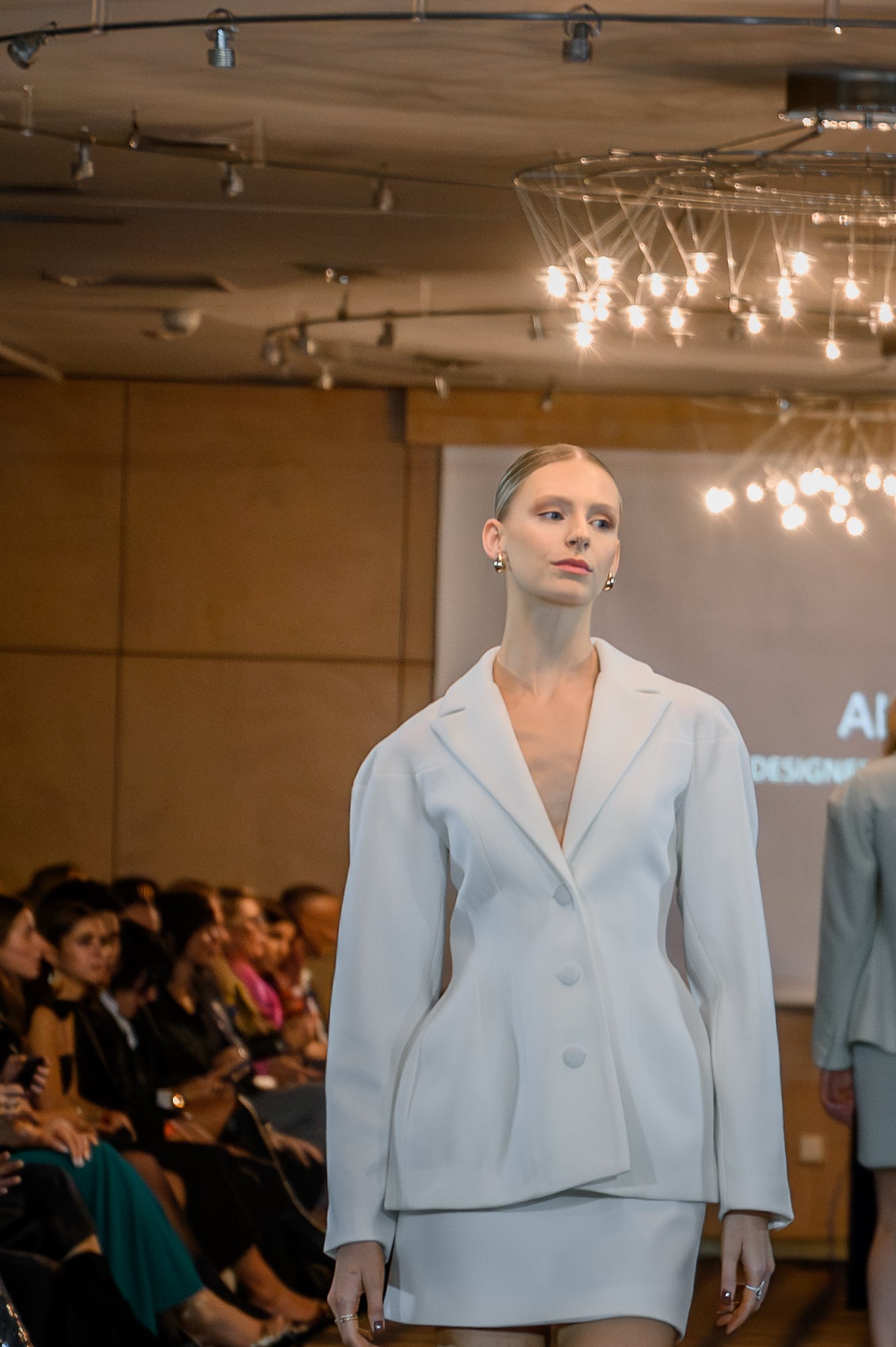 Get the complete Ophelia Suit at an exclusive pre-sale price. Includes The Ophelia Jacket and The Aurelia Skirt in white, designed for tall women. The jacket features longer sleeves and a longer torso, while the skirt considers longer legs, creating a perfectly balanced, chic, and timeless ensemble.